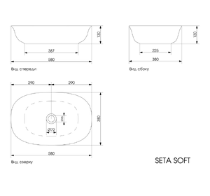 SETA SOFT BO раковина солидсурфейс 58*38*13h(см), на столешницу, бел.матов., PLUMBERIA SELECTION (00
