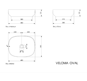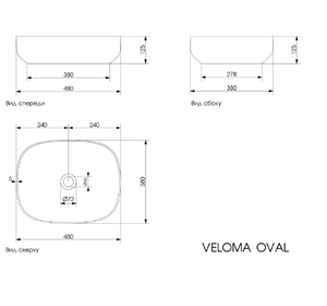 VELOMA OVAL BN раковина солидсурфейс 48*38*12,5h(см), на столешницу,биколор матовый Белый-Черный, PL