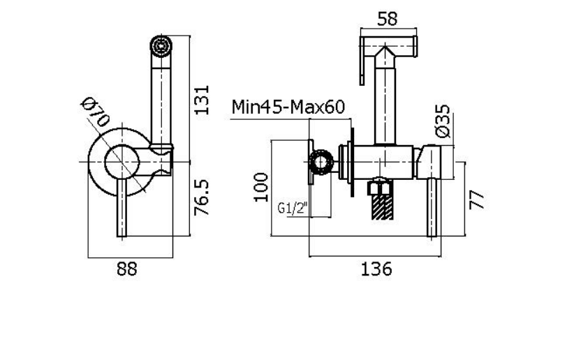 Смеситель для гигиенического душа, душевая лейка, держатель для душевой лейки, шланг