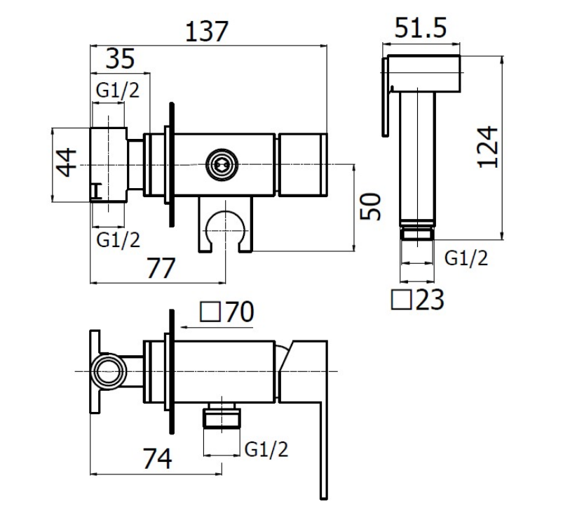 Смеситель для гигиенического душа, душевая лейка, держатель для душевой лейки, шланг.