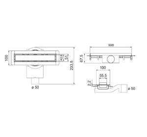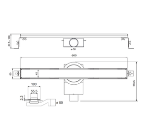 PSWT60 Трап душевой PS WALL TILE 6x60 встраив.в стену, под плитку,нерж.сталь, горизонт. выпуск Ду 50