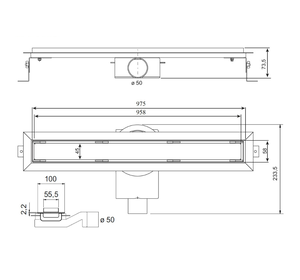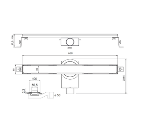 PSL60OB Трап душевой PS LINEAR 6x60 2устор. накладка из нерж.стали, комбинир.затвор с горизонт. Выпу