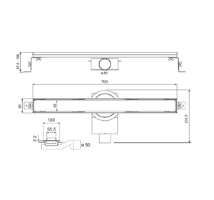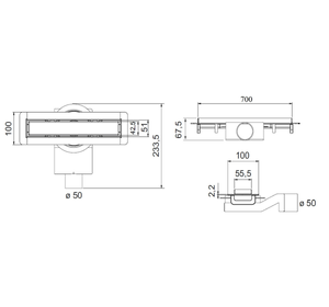 PSL70BO Трап душевой PS LINEAR 6x70 2устор. накладка из нерж.стали, комбинир.затвор с горизонт. Выпу
