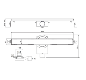 PSL80BR Трап душевой PS LINEAR 6x80 2устор. накладка из нерж.стали, комбинир.затвор с горизонт. Выпу