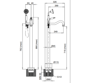 KOBOS2260 KOBUK Напольный смеситель для ванны, BUGNATESE (610371)