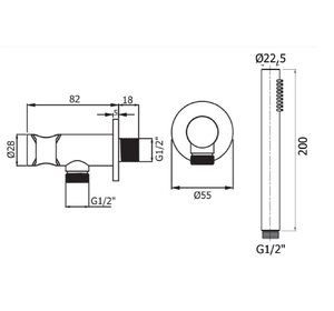 SPT0258NO Излив из стены d.24, длина 250 мм, подкл. 1/2' с латунной накладкой d.70, черный матовый