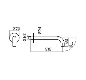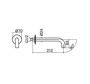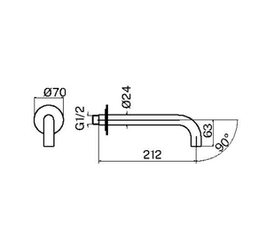 SPT0058CR Излив из стены d.24, длина 210 мм, подкл. 1/2' с латунной накладкой d.70, хром IXO, Plumb
