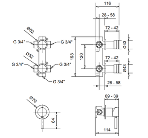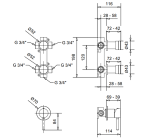 KOBNE2205 KOBUK Смеситель для душа, встраиваемый, 2 дивертера, на 2-вых, BUGNATESE (610303)