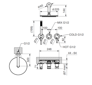 KOBOS2201H KOBUK Набор для душа, верхний душ d.225, BUGNATESE (610376)