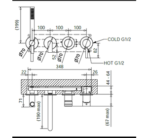 OXBR6378 OXFORD Смеситель для душа, встраиваемый, девиатор, на 2-вых, термостат, BUGNATESE (610246)