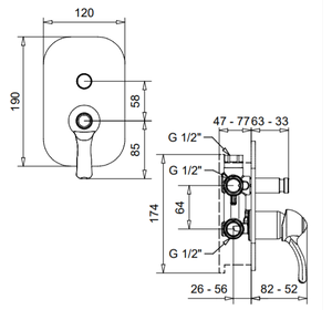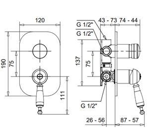 LEMDO1972 LEM Смеситель для душа, встраиваемый, дивертер, на 2-вых, BUGNATESE (610287)