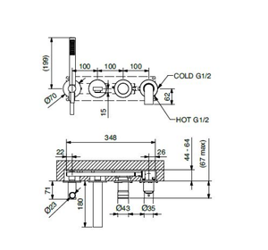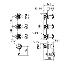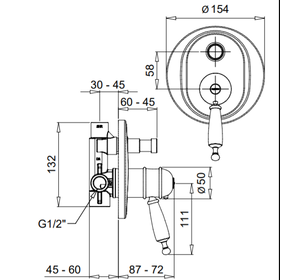 OXDO6331 OXFORD Смеситель для душа, встраиваемый, дивертер, на 3-вых, BUGNATESE (610248)