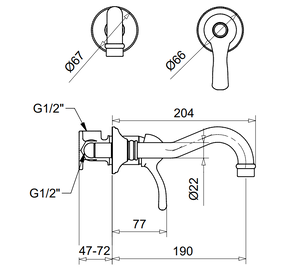 OXDO6346 OXFORD Смеситель для раковины, встраиваемый, излив 230мм, BUGNATESE (610124)