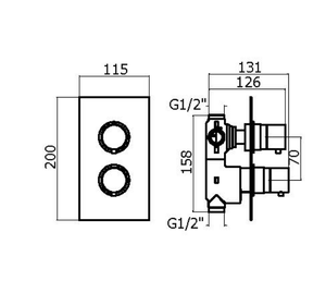 SIMNS6692 SIMPLE Смеситель для душа, встраиваемый, дивертер, на 2-вых, BUGNATESE (610331)